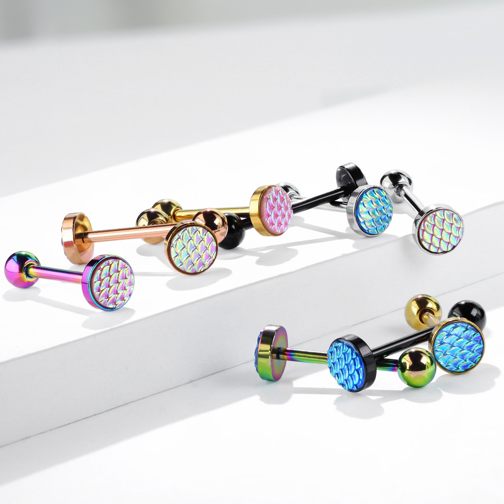 Zungenpiercing mit farblich nuancierten Schuppendesign