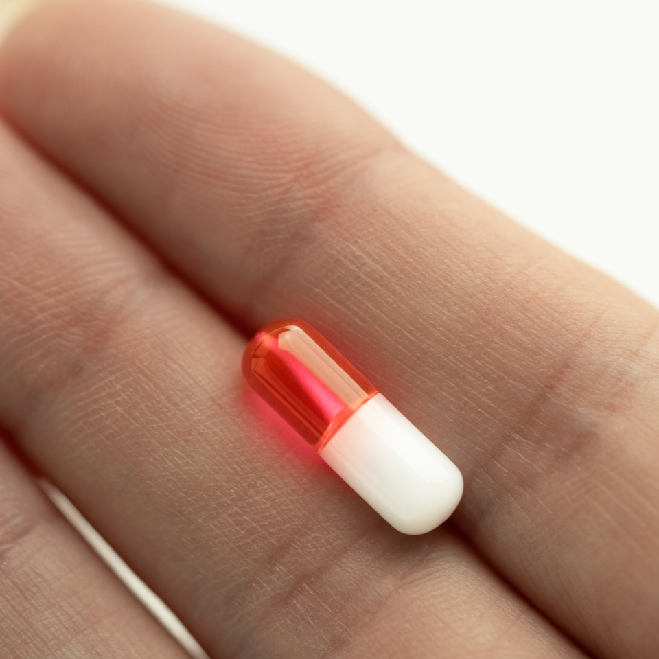 Die zweifarbige Pille wurde sehr naturgetreu nachgestellt und hat eine Länge von 16 mm und eine Stabstärke von 5 mm. Allerdings hat sie wenig mit herkömmlichen Medikamenten zu tun. Diese einzigartige Pille ist in sieben verschiedenen Farbkombinationen erhältlich. Die eine Hälfte der Pille ist bei allen Modellen weiß, während die Farbe der anderen Hälfte oben ausgewählt werden kann.